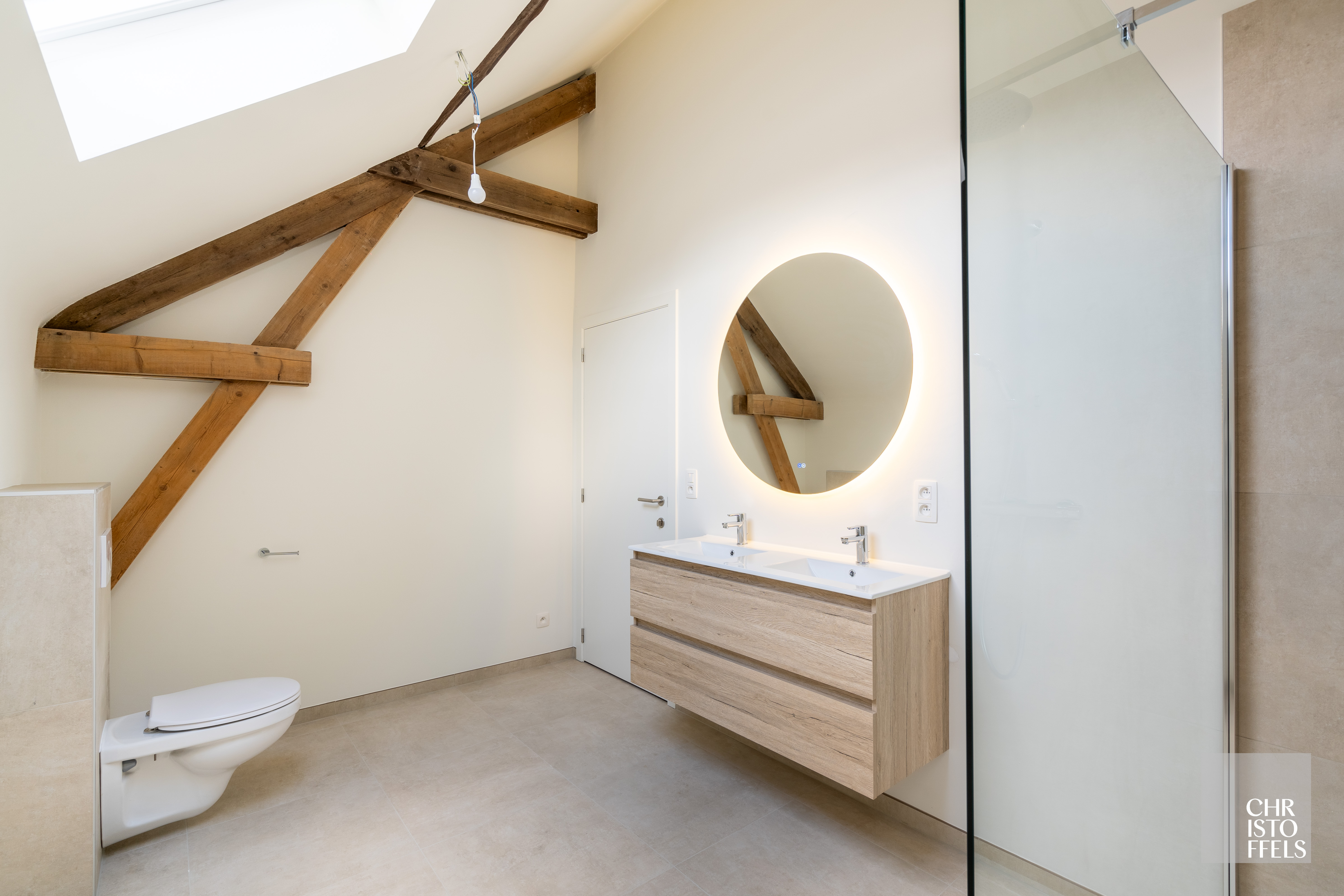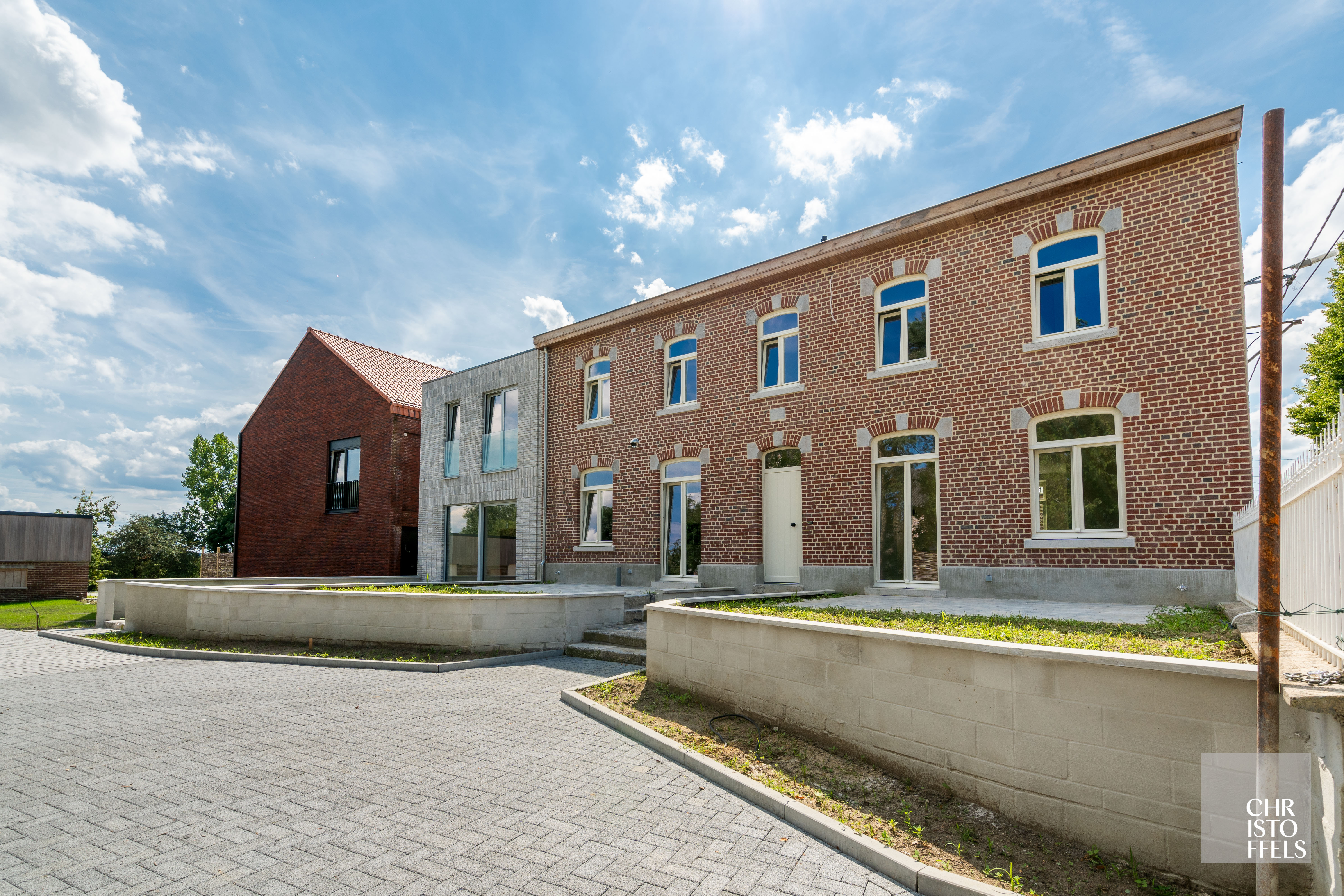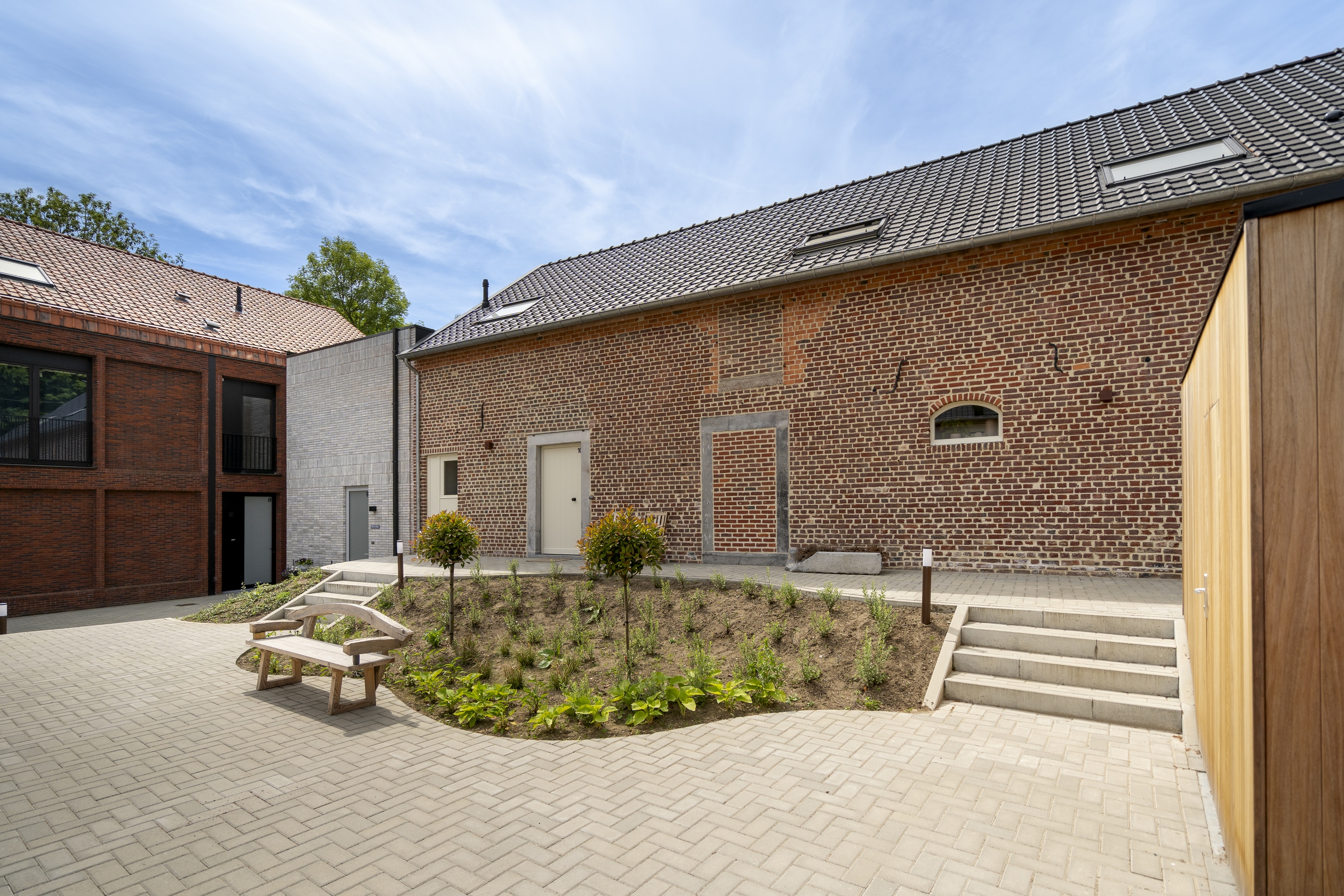 Voorzien van 11 kwalitatieve grondgebonden woningen met terras en/of tuin, smaakvol geïntegreerd binnen de authentieke muren van een bestaande vierkantshoeve.